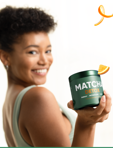 100% natuurlijk en gemakkelijk te bereiden premium matcha melange met verfrissende sinaasappelsmaakinfusie + verrijkt met citroengras en bittere sinaasappelextracten voor een versterkte detoxwerking