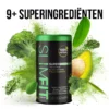 Dagelijkse superblend van 9 groene superfoods + matcha! Gemengd in een perfecte combinatie met talloze gezondheidsvoordelen om de darmgezondheid, spijsvertering en stofwisseling te verbeteren en om je lichaam te voorzien van vitaminen, mineralen en antioxidanten.