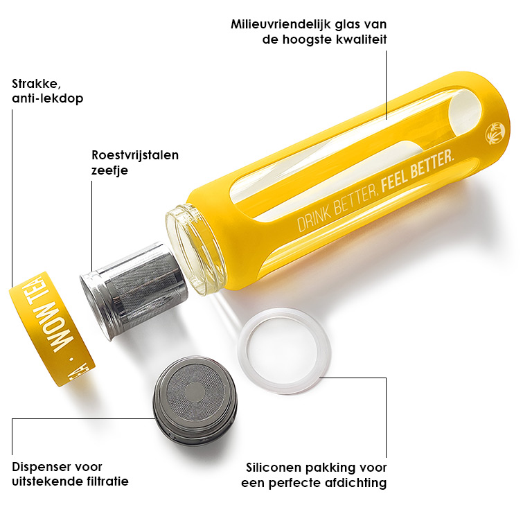 Duurzaam, stevig en lekvrij, de infuserfles behoudt zijn helderheid na honderden wasbeurten.
