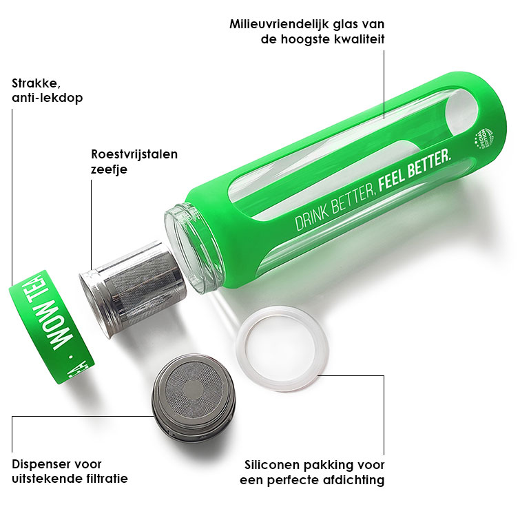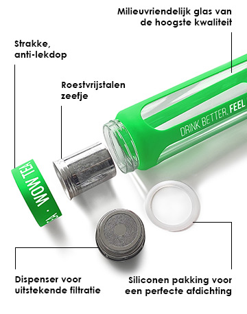 Duurzaam, stevig en lekvrij, de infuserfles behoudt zijn helderheid na honderden wasbeurten.