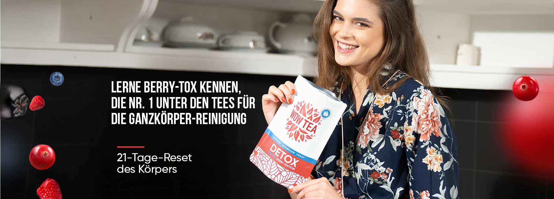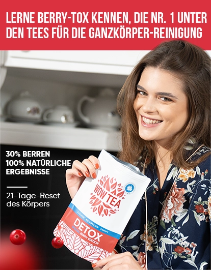 "Der Detox-Tee mit Beeren ist mein morgendliches Ritual - ich besiege meinen Blähbauch und habe weniger Heißhunger am Tag.'"