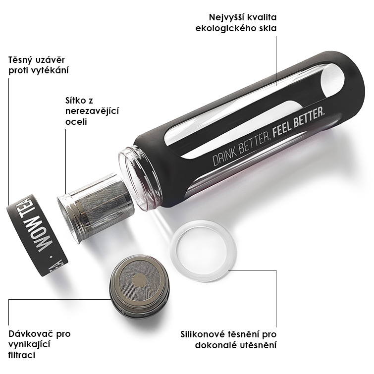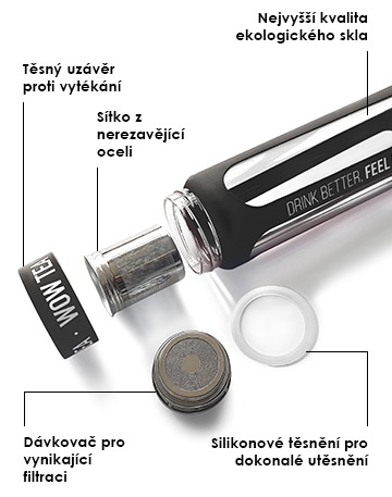 Láhev se sítkem je odolná, pevná a nepropustná a i po stovkách mytí si zachovává svou čistotu.