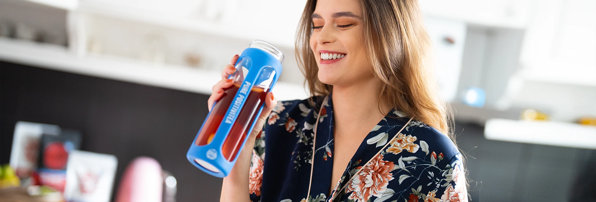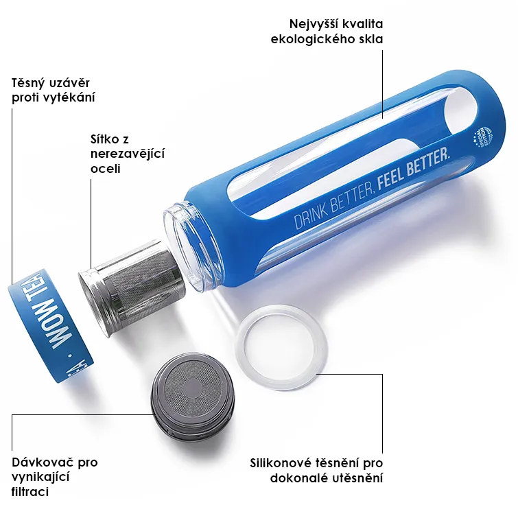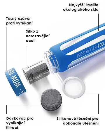 Láhev se sítkem je odolná, pevná a nepropustná a i po stovkách mytí si zachovává svou čistotu.