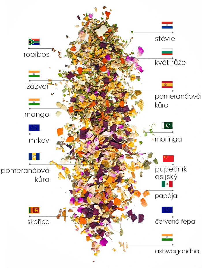 100% přírodní wellness bylinky + exotická ovocná příchuť.