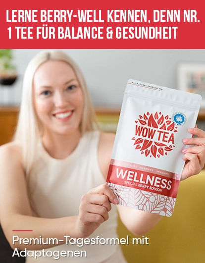 "Ich habe das Gefühl, dass sich meine Gesundheit, meine Stimmung und meine Vitalität verbessert haben, seit ich den Wellness-Tee mit Beeren trinke!’"