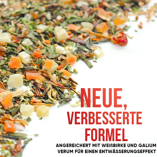 Der einzigartige Sommer-Abnehm-Tee mit verbesserter und schneller Wirkung. Neue exotische Formel mit Mango-Ananas- und Papaya-Geschmack und angereichert mit starken Kräutern für schnellere Ergebnisse!