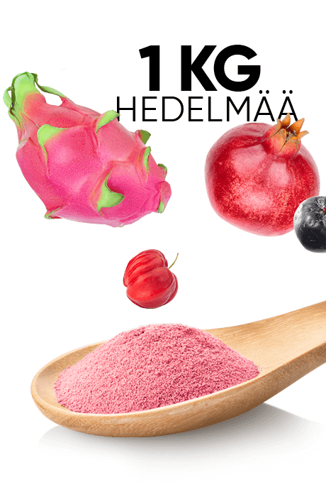 1 lusikallinen = 1 kg g superterveellisiä eksoottisia hedelmiä, sekä vastustamaton kirsikan ja marjan maku!