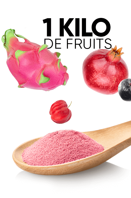 1 cuillère = 1 kg de fruits exotiques super sains + un goût irrésistible de cerise et de baies!