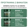 Πρόγραμμα 42 ημερών του πιο αποτελεσματικού συνδυασμού matcha για 100% φυσική απώλεια βάρους και πλήρη αποτοξίνωση σώματος. Ξεκινά με το Matcha Detox τις πρώτες 21 ημέρες, όταν ο μεταβολισμός επιταχύνεται και ο οργανισμός απελευθερώνεται από όλες τις βλαβερές τοξίνες. Μετά από αυτό, είστε έτοιμοι για τις επόμενες 21 ημέρες λήψης του Matcha SlimFit. Με αυτό επιτυγχάνετε πλήρη και μακροχρόνια απώλεια βάρους.