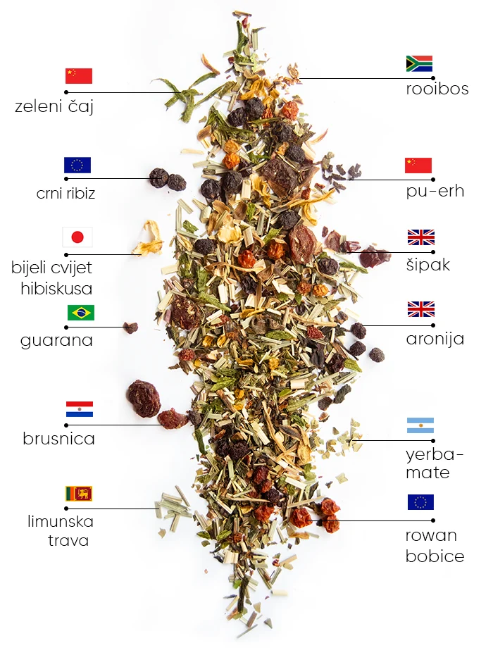 Bobičasto voće bogato vitaminima, šipak i roibos imaju protuupalna svojstva koja podržavaju imunološki sustav i pružaju brojne zdravstvene prednosti.