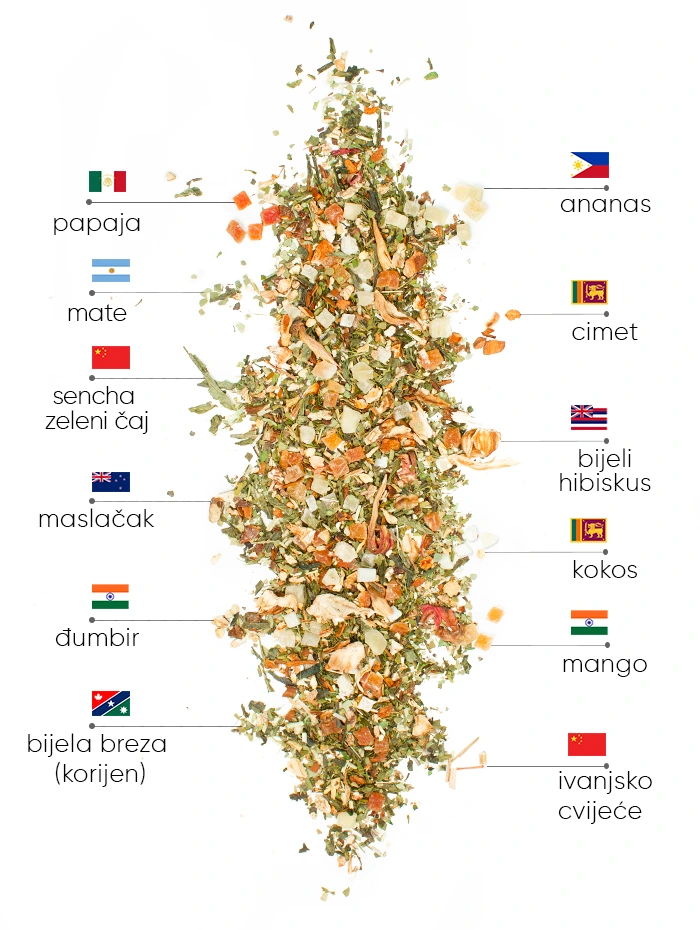 Premium ljetni čaj za 100% prirodno mršavljenje s poboljšanom formulom brzog učinka. Ograničeno tropsko izdanje s izborom egzotičnog okusa manga, ananasa i papaje!