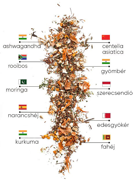 A legfőbb inspirációt az ayurvéda ősi rendszere adta számunkra, amely a leggazdagabb és legrégebbi gyógynövény-archívummal rendelkezik az egészség, az immunitás és a hosszú élet érdekében. Ezért Wellness teánkat azokból a legkiválóbb ayurvédikus gyógynövényekből készítettük, amelyeket évszázadok óta használnak gyógyító célokra. Ezeken kívül kiválasztottunk még további néhány speciális gyógynövényt, amelyek tökéletesen megfelelnek az ayurvéda receptjének, és bizonyítottan pozitív hatással vannak az egészségre.