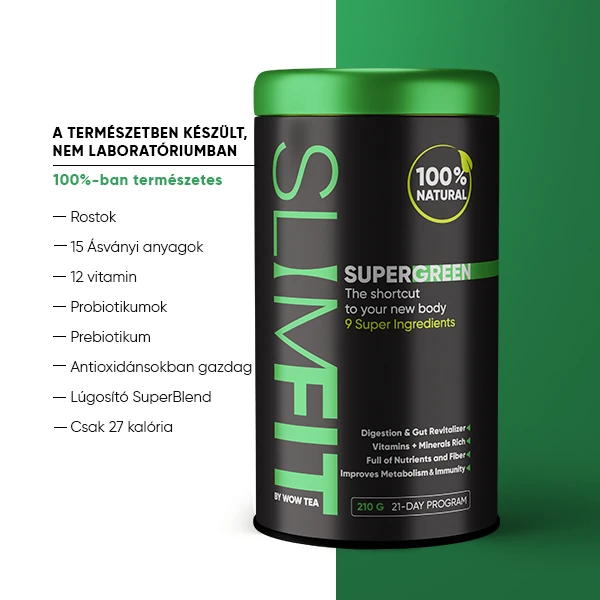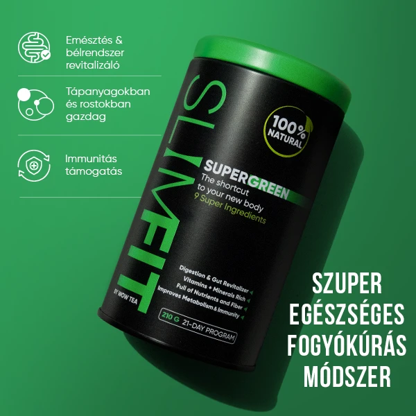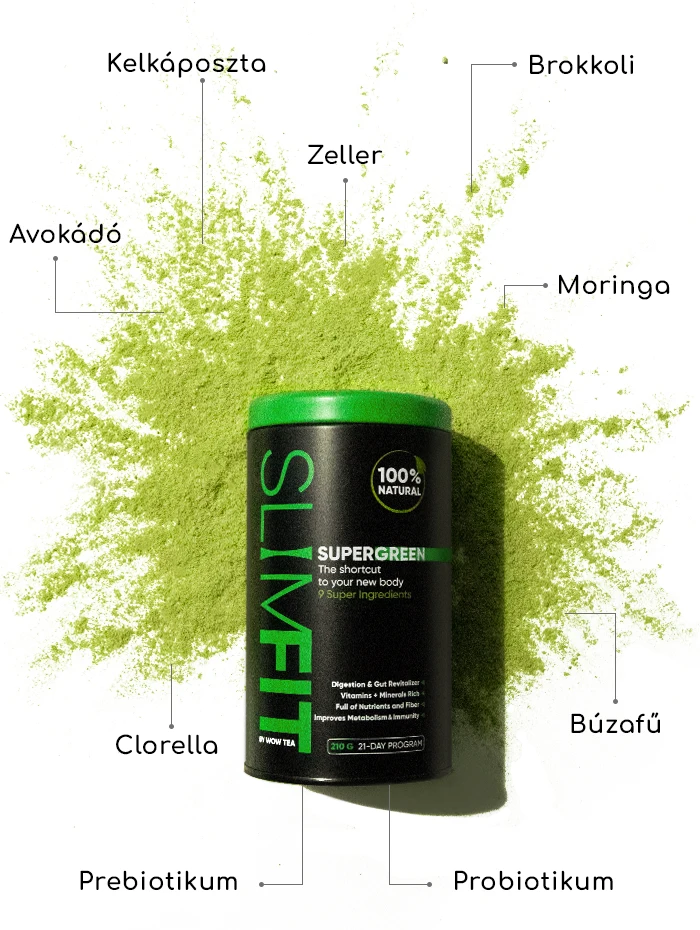 A SlimFit SuperGreen olyan teljesen természetes összetevők egyedülálló keveréke, mint a moringa és a kelkáposzta, tele ásványi anyagokkal, vitaminokkal, rostokkal és antioxidánsokkal. Ezek a szuperélelmiszerek együttesen támogatják a zökkenőmentes emésztést és elősegítik az egészséges bélritmust. A SuperGreen segít a szervezetnek a tápanyagok teljes felszívódását, csökkenti a sóvárgást és a puffadást, miközben tartós teltségérzetet biztosít. Ellentétben a diétákkal, amelyek elszívhatják az energiát és jojó-effektust okozhatnak, ennek az erőteljes táplálékkiegészítőnek a rendszeres használata hosszú távú eredményeket biztosít. Hosszú távon élvezheti a karcsúbb derekat és a lapos hasat. És ez még nem minden! A SuperGreen az anyagcserét is fokozza, így segít természetes és tartós fogyásban, miközben javítja a belek és a gyomor működését.