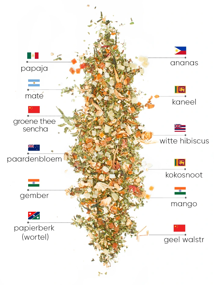 Maar dat is nog niet alles – onze limited edition kruiden verbeteren de spijsvertering en het maagcomfort, wat een opgeblazen gevoel vermindert en zo je zomerse figuur verder vorm geeft.