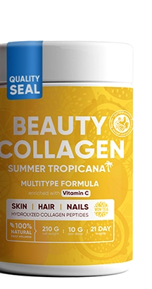 Tropicana Beauty Collagen е твоята тропическа формула за красота – с тип I & III хидролизиран колаген + витамин C, които работят в пълен синхрон.