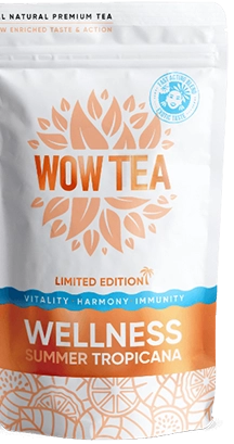 Summer Tropicana Wellness е твоят естествен ритуал за презареждане – създаден от първокласни Аюрведа билки и обогатен с плодовата свежест на манго и праскови за наслада с всяка глътка.