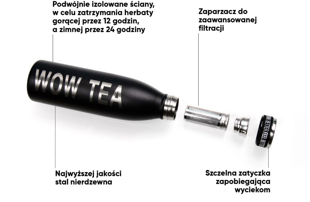 "Utrzymuje herbatę cudownie gorącą lub odświeżająco zimną przez cały dzień!”