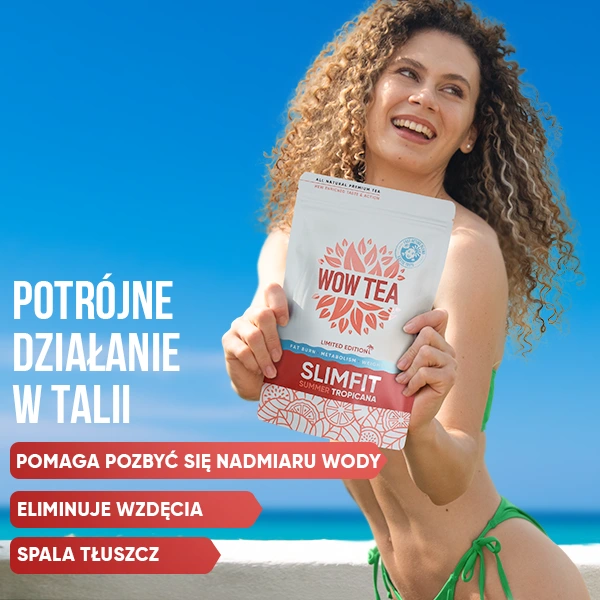 Bezpośredni wpływ Slimfit Summer Tropicana na spalanie tkanki tłuszczowej, wydalanie zatrzymanej wody i redukcję wzdęć to potrójny efekt dla Twojej figury, który zagwarantuje Ci świetne samopoczucie gdziekolwiek będziesz tego lata