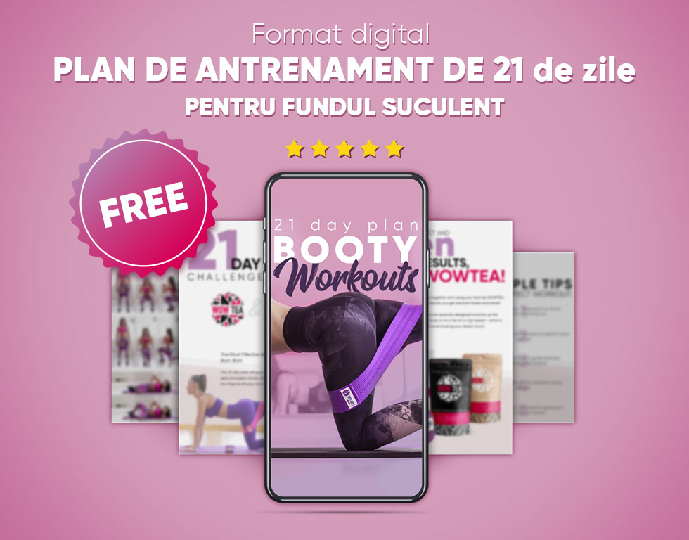 + E-BOOK Plan de antrenament gratuit de 21 de zile pentru fundul suculent – Program cu exerciții pentru acasă