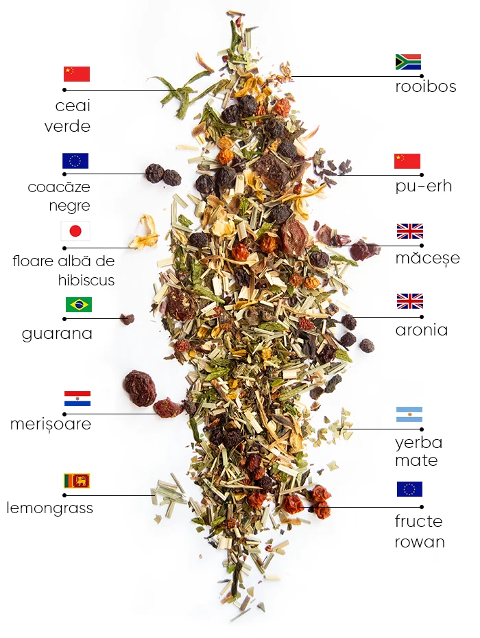 WOW TEA BERRY-TOX conține cele mai revoluționare fructe de pădure, sporind detoxifierea – aronia, împreună cu fructe Rowan, merișoare și coacăze negre. Combinația ajută la accelerarea proceselor de curățare ale corpului, la întinerirea sistemului din interior și la stimularea funcțiilor biologice esențiale.