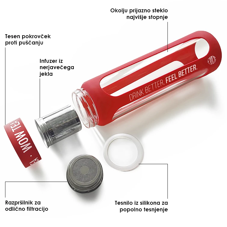 Vzdržljiva, čvrsta in neprepustna steklenica po stotih pranjih ohrani svojo jasnost.